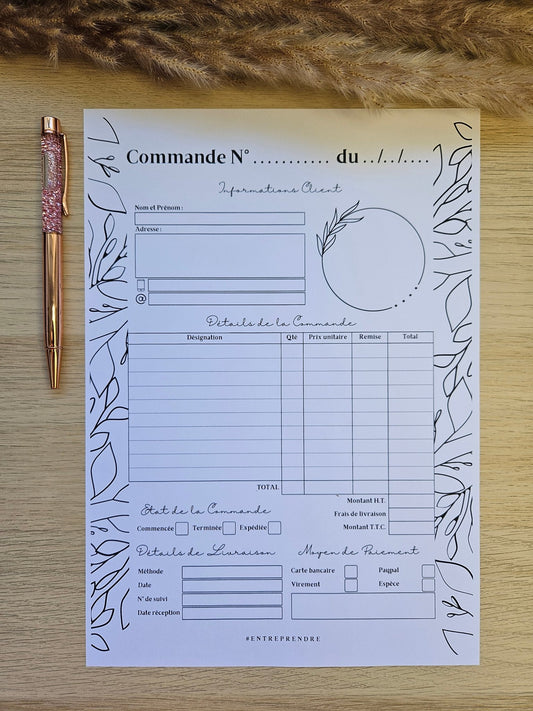Fiche à imprimer : Carnet de commandes clients